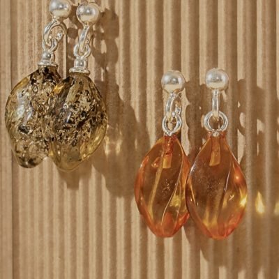 Karališko gintaro auskarai diskeliai, kurie priglunda prie pat ausies ir atrodo labai elegantiškai.