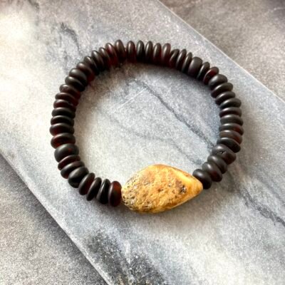 Elegantiška apyrankė suverta iš konjako spalvos karoliukų ir papuošta sidabro spalvos detalėmis, prisipildo dar daugiau prabangos.