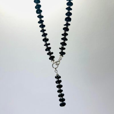 Juodojo gintaro vėrinys ir baltieji perlai su sidabrinėmis detalėmis, tai kas paslaptinga ir žavu.