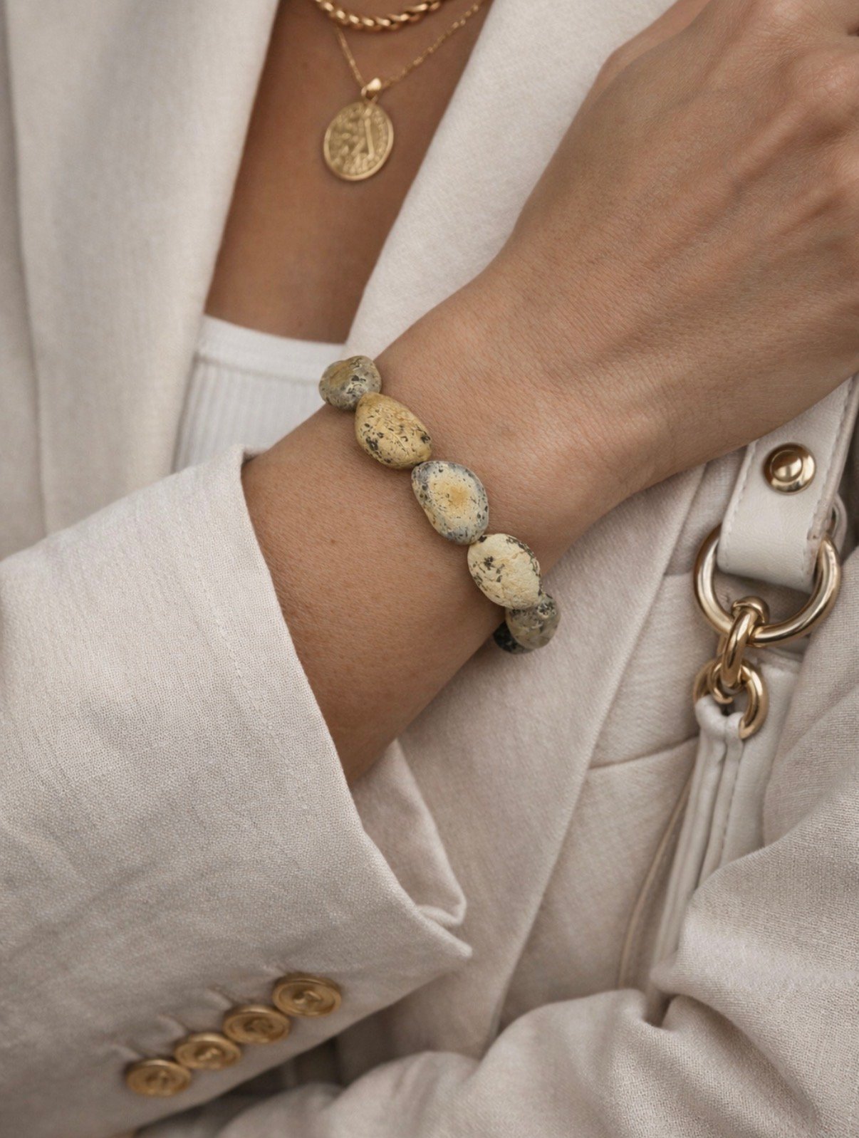 Išskirtinumas: kiekviena detalė unikali, su natūraliu raštu ir gintaro intarpais