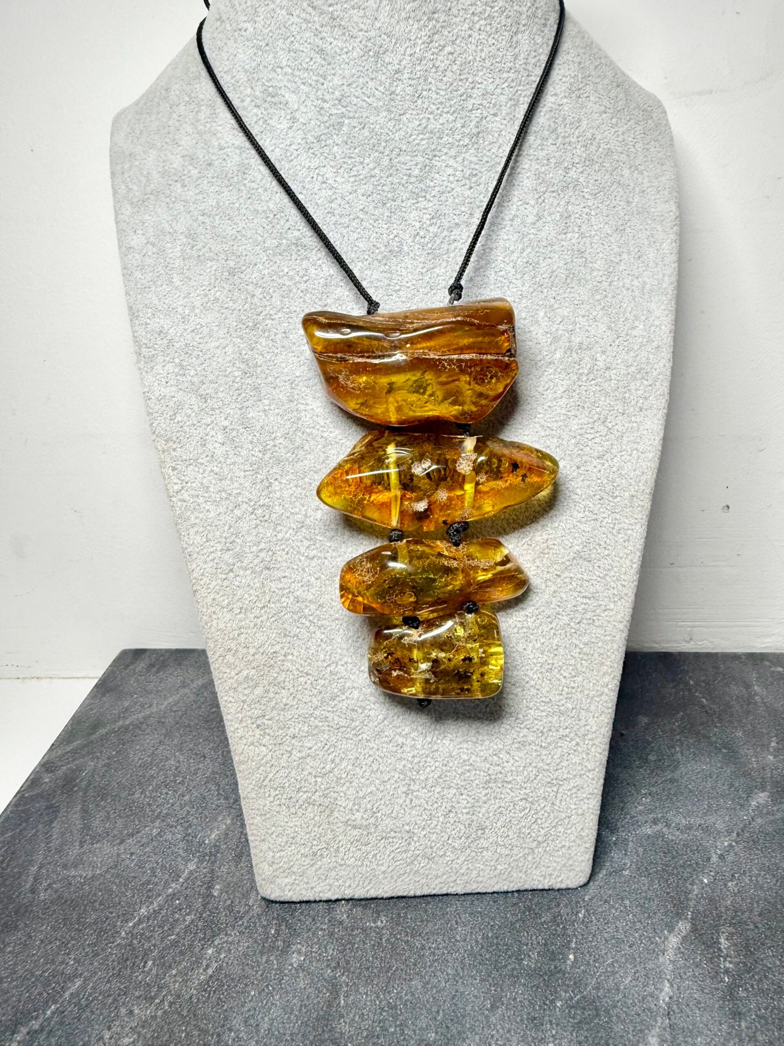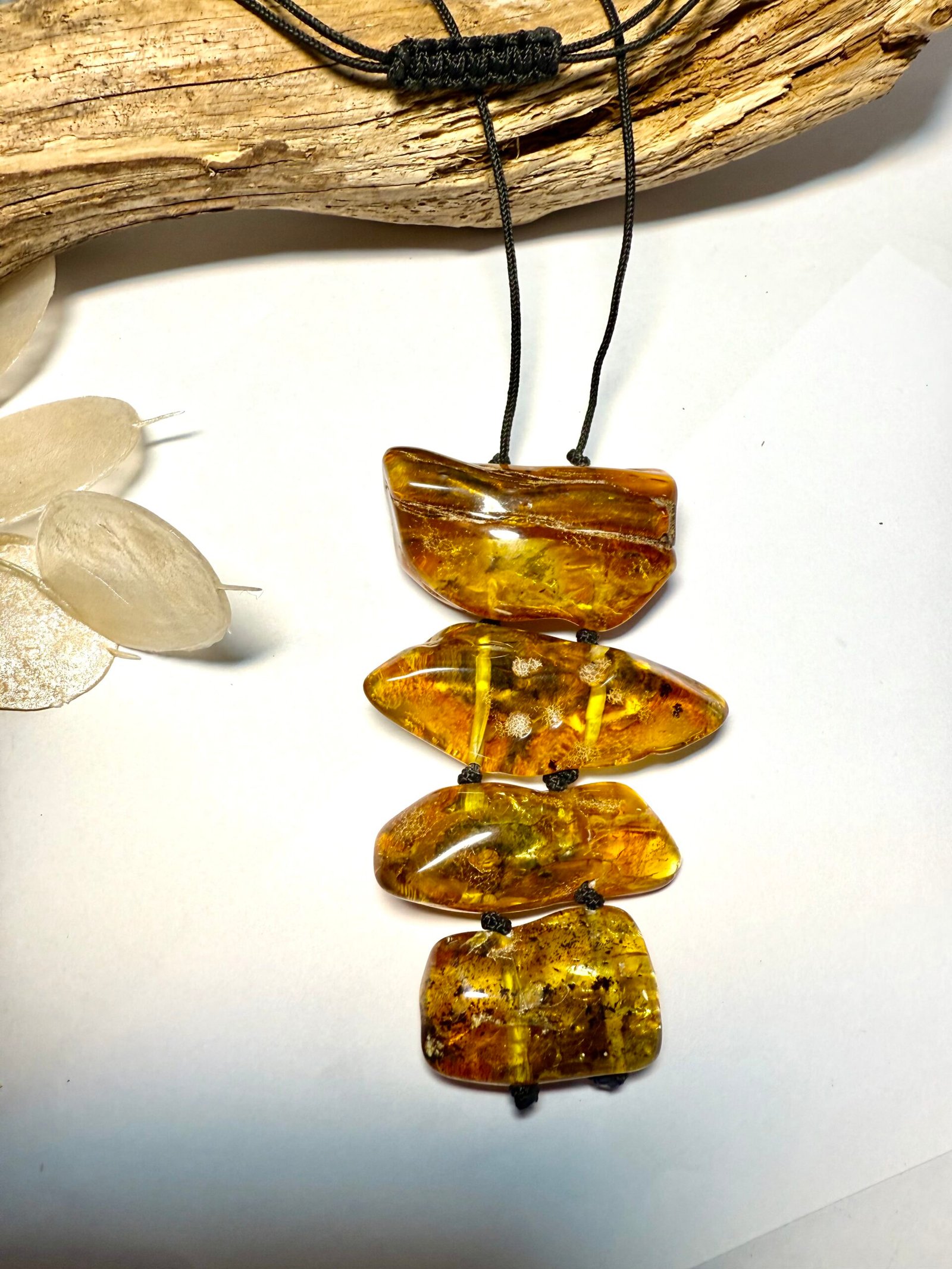 Stilingas, meniškas ir tuo pačiu puošnus gintaro kaklo vėrinys įvairių formų gintariukų. Šis rankų darbo papuošalas tiks prie bet kurio rūbų derinio, bet kuriuo metų laiku. Visi mūsų gaminiai yra rankų darbo, kiekvienas gintarėlis ypač kruopščiai atrenkamas, o tai užtikrina, kad mūsų gaminiai yra aukščiausios kokybės.