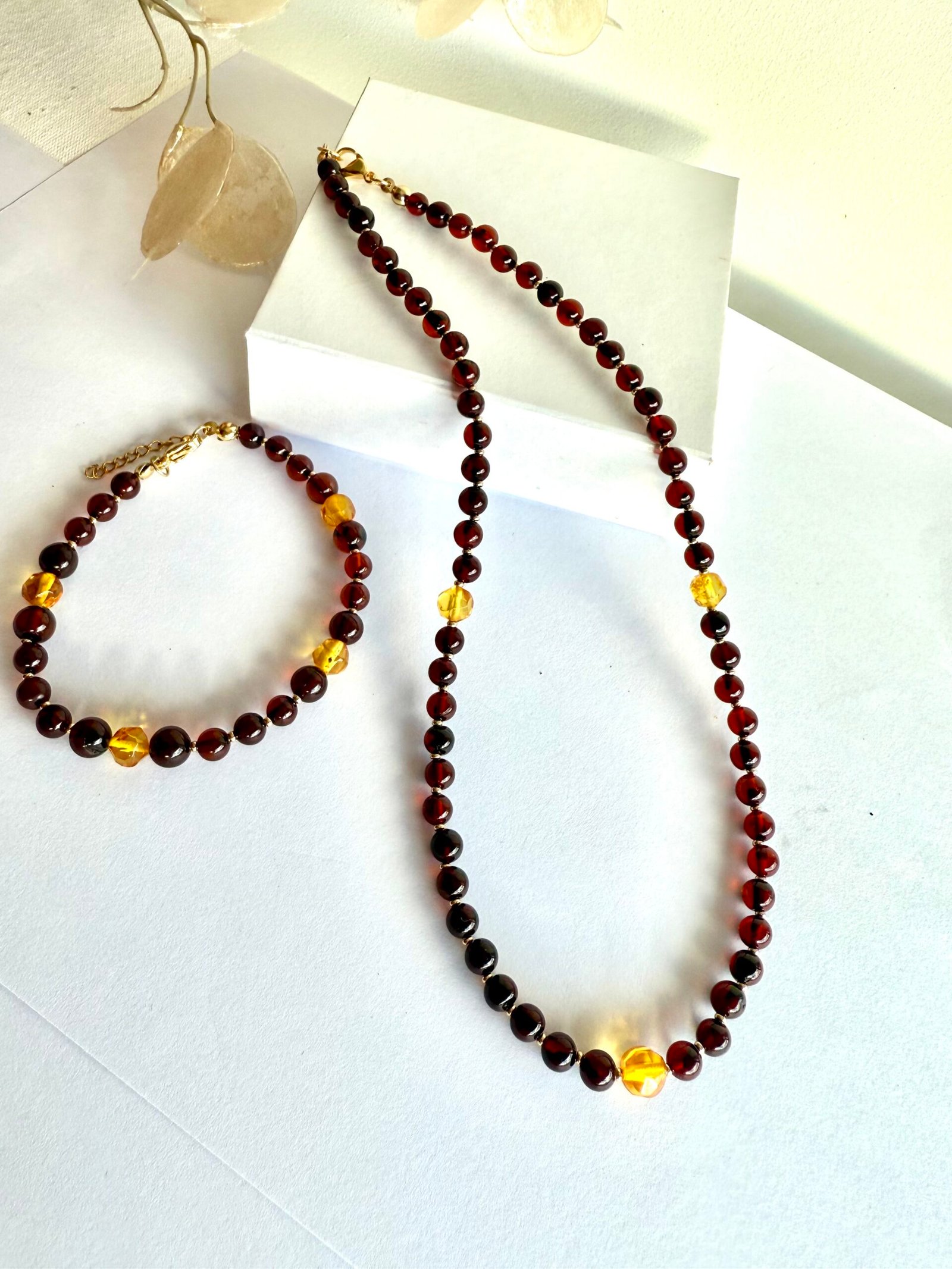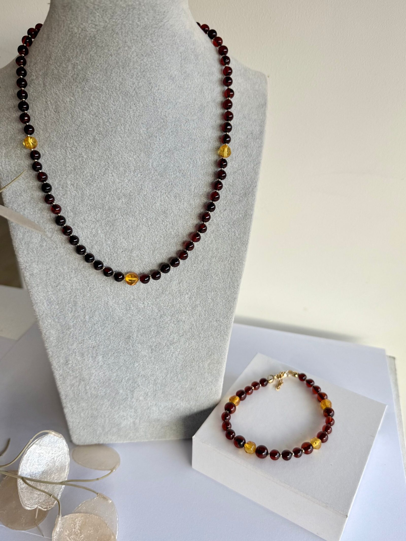 Gintaro spalva gali būti tokia unikali kaip ir šio puošnaus komplekto – vėrinys ir apyrankė. Spalvų gama pati kalba už save.